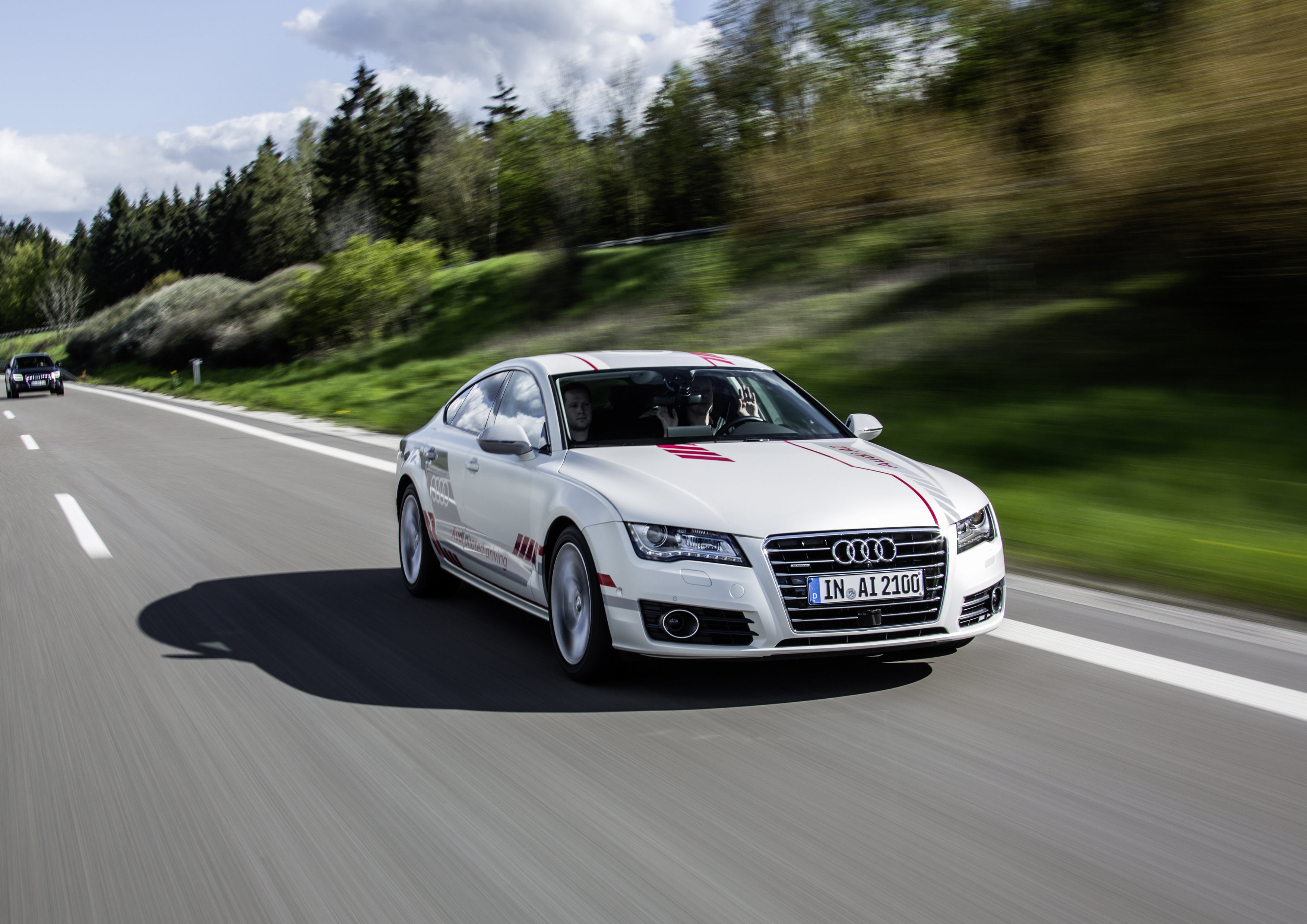 Audi beviser igen og igen mærkets fremskridt inden for selvkørende biler med spektakulære tiltag: Fx tegnede en selvkørende Audi TTS i USA mærkets logo med de fire ringe på en saltsø, ligesom den - uden fører - gennemførte den legendariske bjergracerbane Pikes Peak i Rocky Mountains. På racerbanen i Hockenheim susede en selvkørende Audi RS 7 Sportback i efteråret 2014 rundt på banen og udfordrede grænserne for det fysisk mulige. Siden da har Audi også vist de næste skridt inden for selvkørende biler på offentlige veje – eksempelvis under almindelige trafikbetingelser på motorveje i USA – fra vestkysten til Las Vegas.